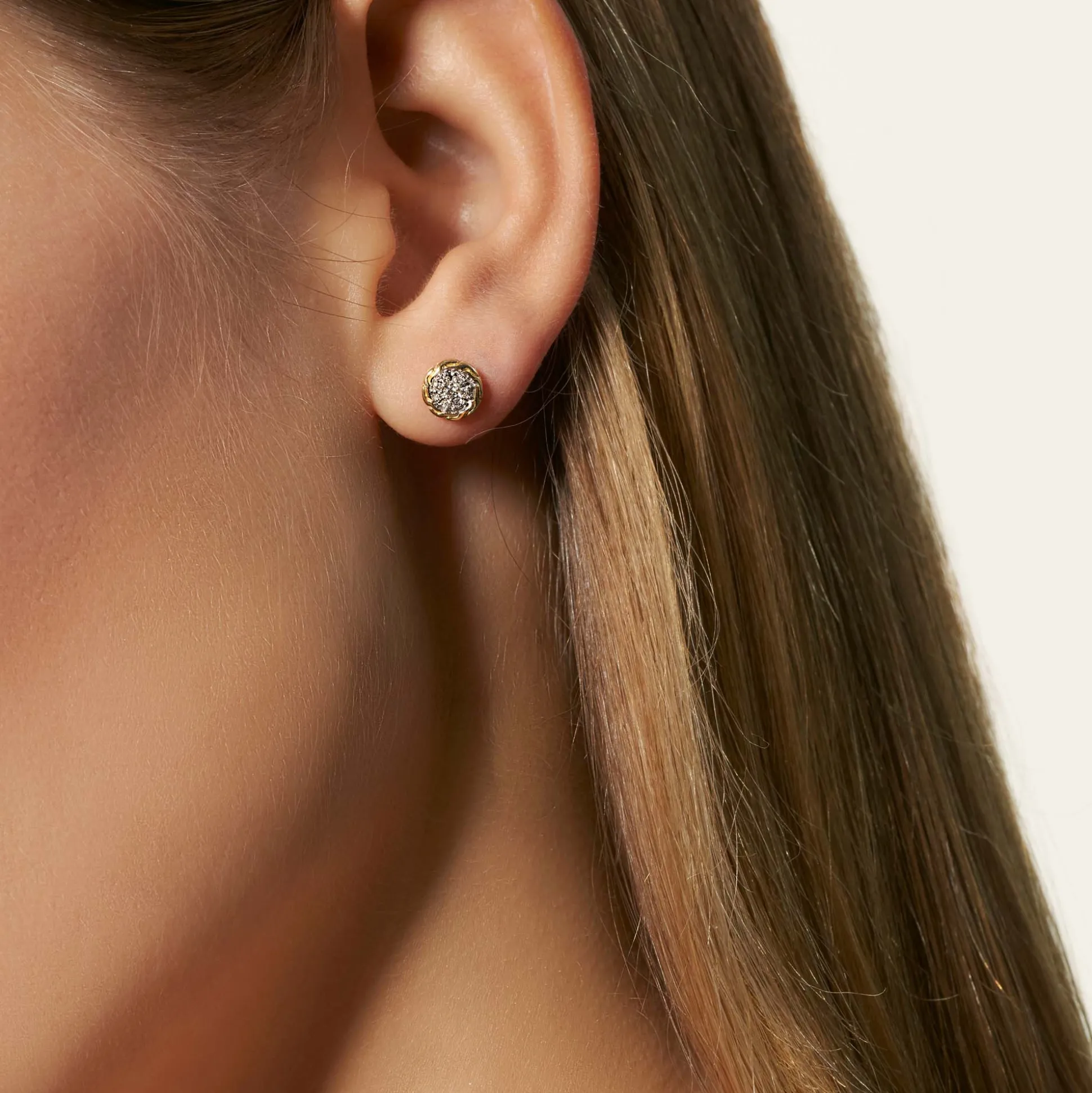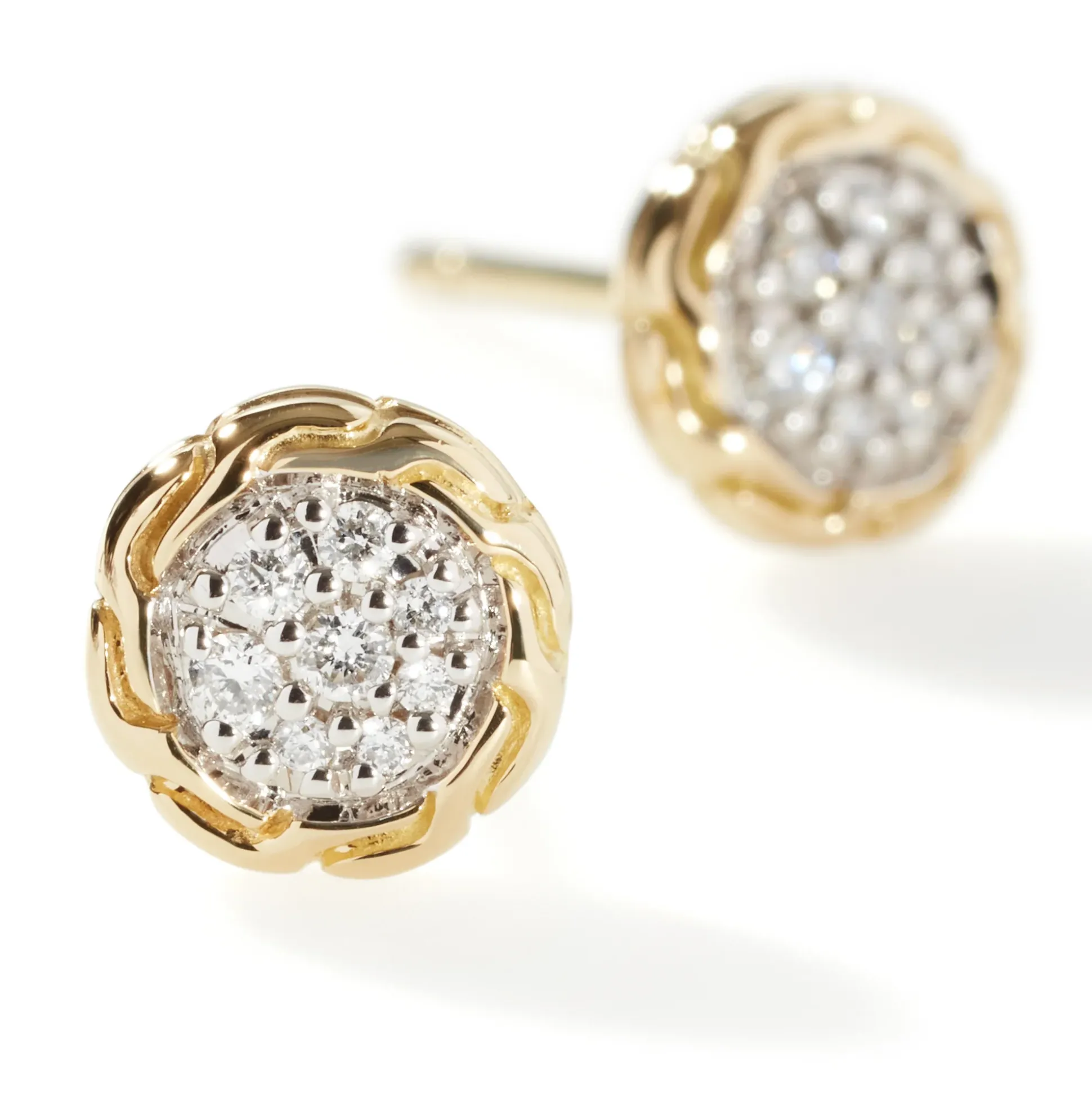 Men John Hardy Studs^Carved Chain Stud Earring, Gold, Diamonds